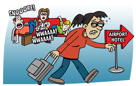 - ยางอุดหู หรือหูฟัง สำหรับกันเสียงรบกวน เพราะสนามบินเป็นที่ๆมีคนพลุกพล่านทั้งคืน แน่นอนว่าจะมีเสียงคนเดิน เสียงประกาศ เสียงคนคุยกันดังไปหมด การหลับให้ได้ในสภาพนั้นไม่ใช่เรื่องง่ายเลย