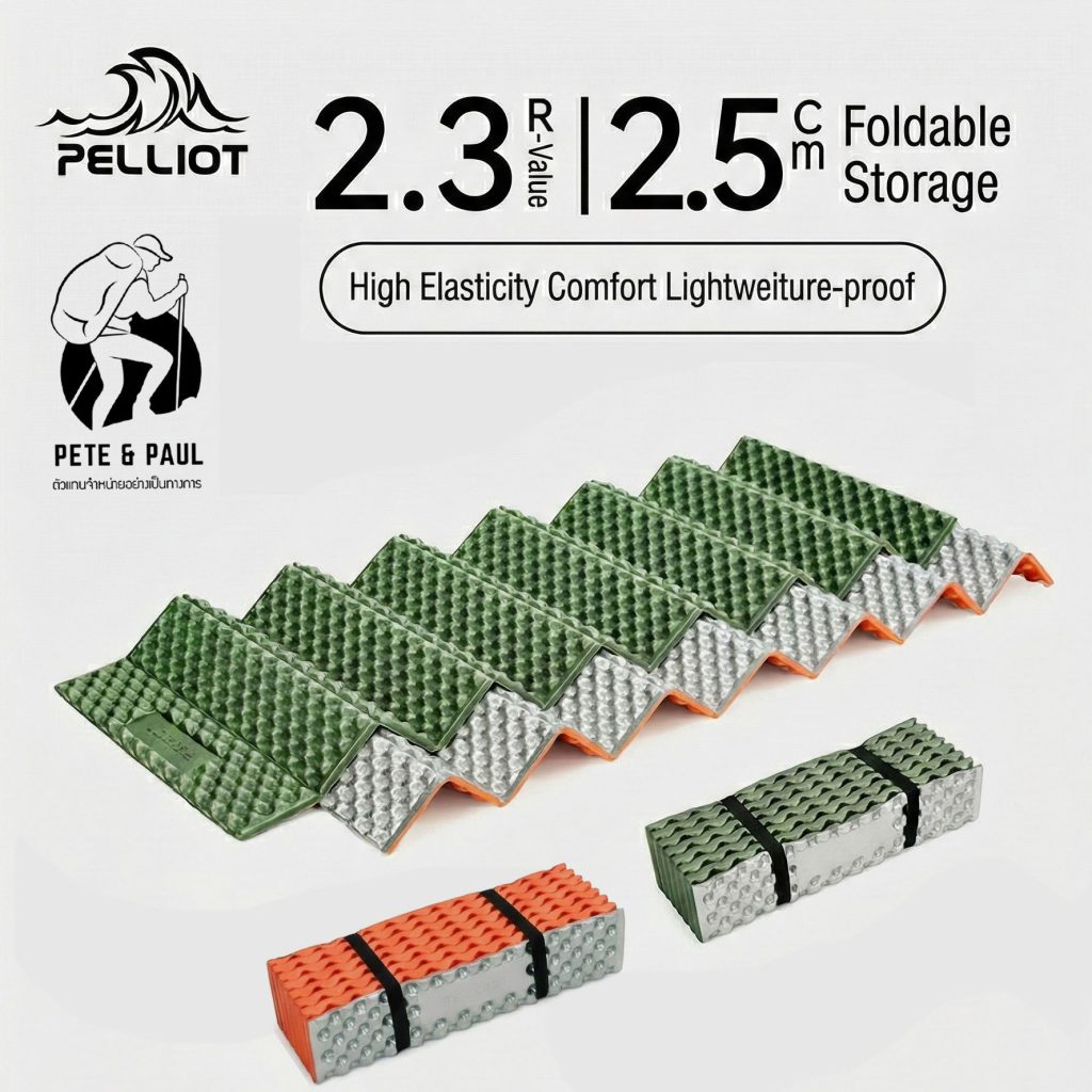 แผ่นรองนั่งเดินป่า Pelliot (50g) แบบพับได้ หนา 14mm บุฟอยล์กันชื้น กันความเย็น นุ่