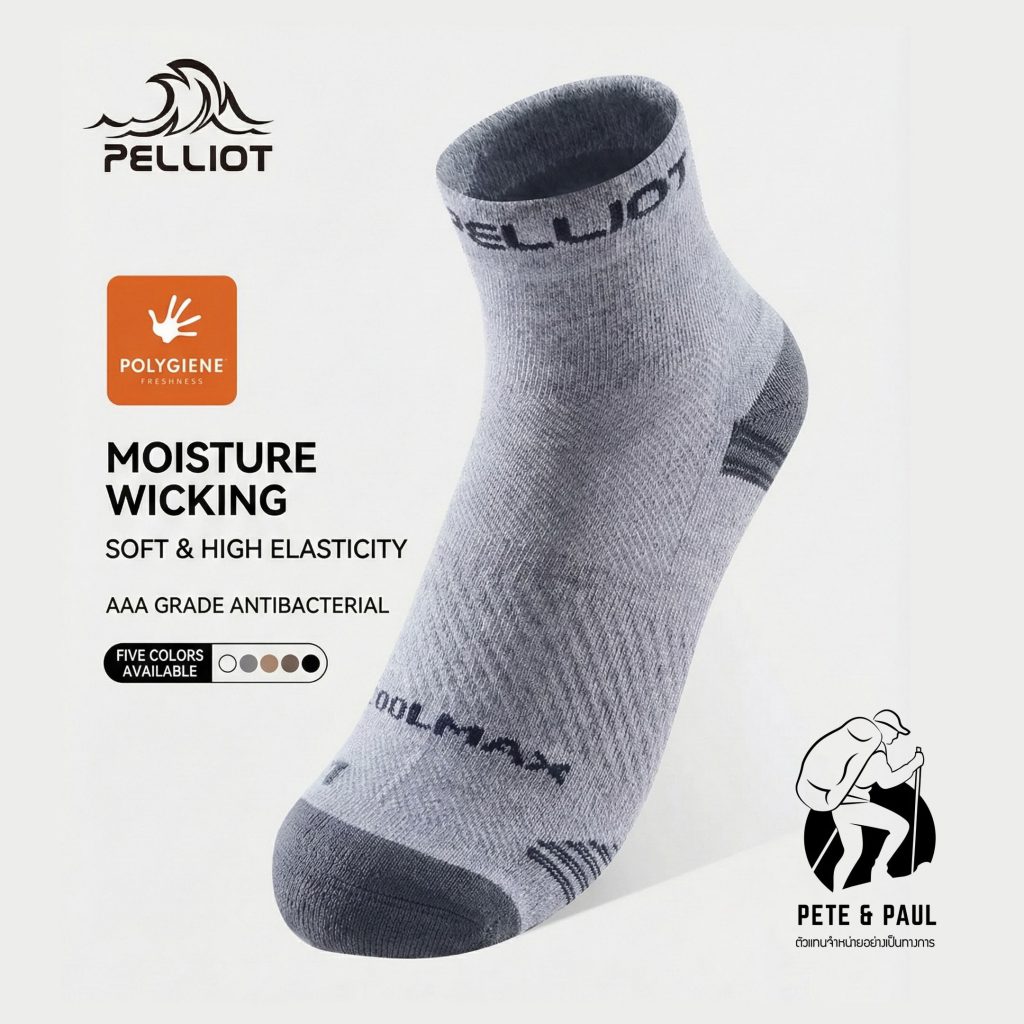ถุงเท้าเดินป่า Pelliot Coolmax ระบายอากาศ ลดแรงกระแทก ยับยั้งแบคทีเรีย (Shock-Absorbing Antibacter