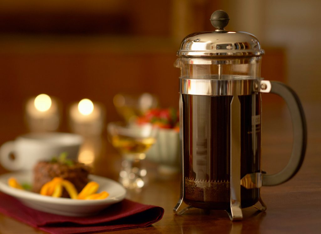 การต้มกาแฟแบบนี้ชาวตะวันตกนิยมมาก อุปกรณ์ง่ายและน่าจะมีกันทุกบ้านเลย การชงกาแฟแบบนี้ต้องมีเครื่องบีบที่เรียกว่า French Press เป็นเหยือกทรงกระบอก ทำจาก แก้ว พลาสติก หรือ โลหะ เลือกรุ่นที่ไม่หนัก ขนาดไม่ใหญ่สามารถเอาติดตัวไปแคมป์ด้วย วิธีการก็ง่ายมากครับ คือ ต้มน้ำให้เดือด ระหว่างรอก็เอากาแฟบดใส่ลงไปในเครื่อง ประมาณ 1 ช้อนโต๊ะ ต่อน้ำหนึ่งลิตร เทน้ำร้อนราว 90 องศา ลงไป คนให้เข้ากัน แล้วก็ทิ้งไว้ 3-4 นาที จากนั้นกดตะแกรงช้าๆ ลงไปและบีบผงกาแฟไว้ด้านล่างอย่างเบาๆ จึงรินน้ำกาแฟที่อยู่ด้านบนของตะแกรงออกมาดื่มครับ