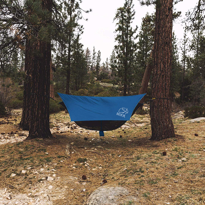 ฟลายชีทเปล หรือบ้างก็เรียกว่าทาร์ป สำหรับกันฝน Mikk กันน้ำ แข็งแรง และขนาดกว้างพอที่จะปกป้องผู้ใช้จากสภาพแวดล้อมได้เป็นอย่างดี ออกแบบามาให้กว้างเพียงพอสำหรับการนอนเปล หรือตั้งแค้มป์ ผลิตจากผ้าไนลอน Ripstop ที่ใช้การทอเป็นตารางเพื่อป้องกันรอยขาดลุกลาม นอกจากนั้นยังเย็บเพิ่มพิเศษเพื่อเพิ่มความแข็งแรงในการรับแรงดึง