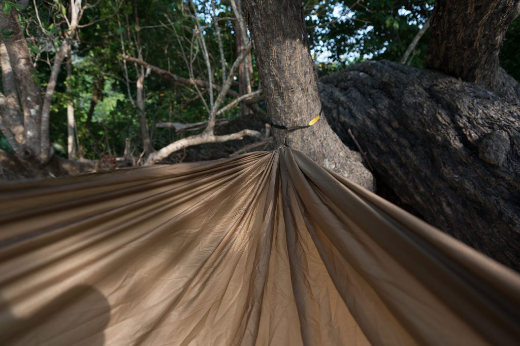 เปลเดินป่า จาก Mikk เปลยาว 2.8 m ผลิตมา 2 ความกว้างให้เลือกคือ 1.88 m กับ 1.4 m ตัวเปลผลิตจากผ้าไนลอน Ripstop ที่ใช้การทอแบบตารางเพื่อป้องกันการลุกลามกรณีที่ผ้าขาด