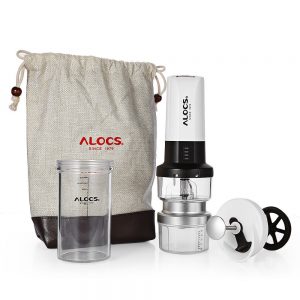 ชุดเครื่องบดกาแฟไฟฟ้าแบบพกพา พร้อมชุดชงการแฟสดแบบเฟรนช์เพรส (french press) จาก ALOCS KW-K25 มาพร้อมแก้ว และซองใส่ คุณสมบัติทำงานได้หลากหลาย เพราะนอกจากจะเป็นเครื่องชงกาแฟ เครื่องบดในตัวแล้ว ยังสามารถใช้เป็นชุดให้แสงสว่างในแค้มป์ได้อีก