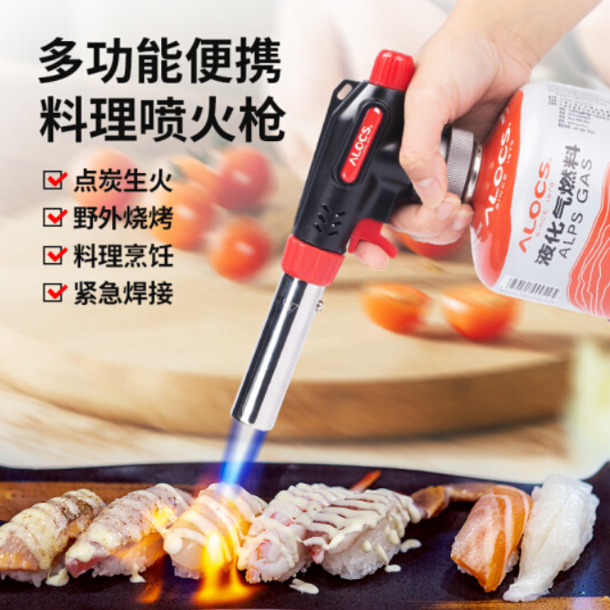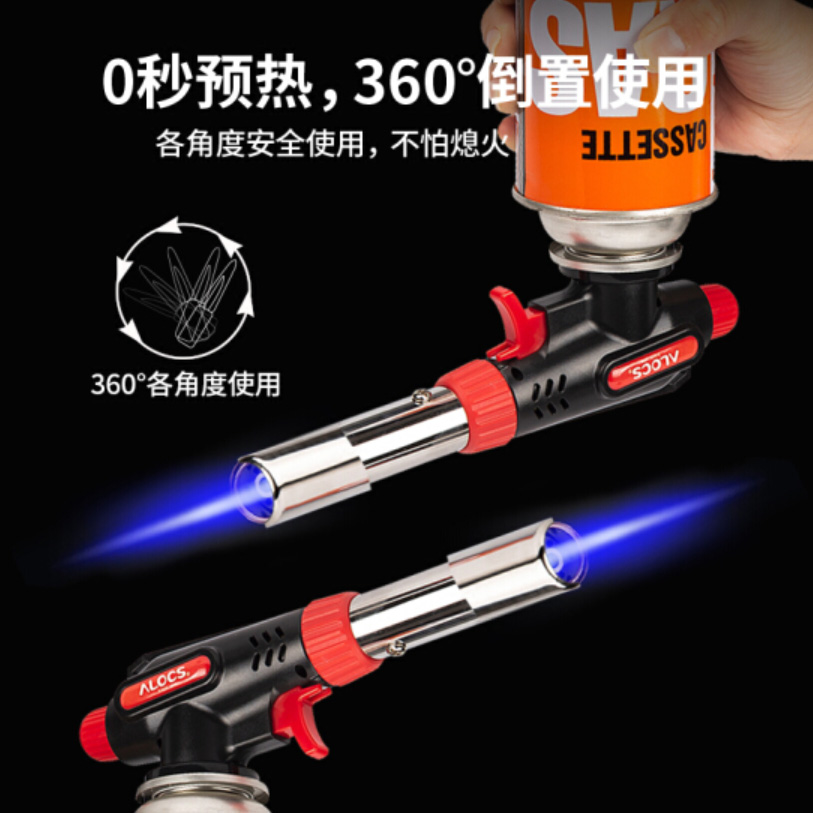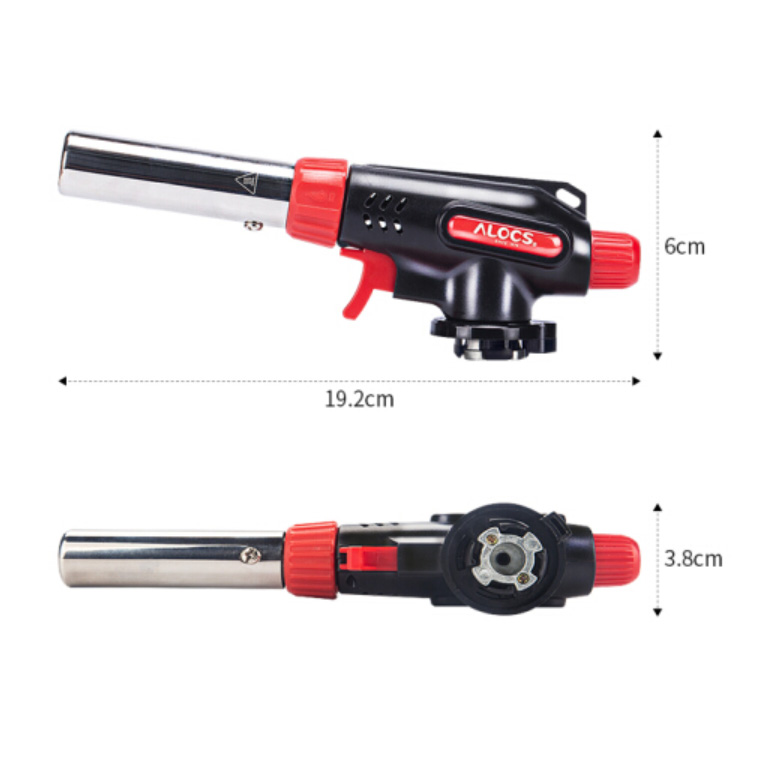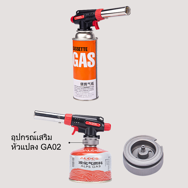 หัวพ่นไฟ Alocs รุ่น MT01 เป็นหัวพ่นไฟปรับความแรงได้ พร้อมตัวจุดไฟ น้ำหนักเบาเพียง 155 กรัม สามารถหมุนเข้ากับแก็สกระป๋องยาวได้โดยตรง (หากต้องการใช้กับแก็สซาลาเปาต้องใช้หัวแปลงรุ่น GA02) เหมาะสำหรับใช้เป็นอุปกรณ์ในการประกอบอาหาร เช่น ย่างสเต็ก เนื้อย่าง ซูซิ จุดเตาย่างบาร์บีคิว ละลายน้ำแข็ง ก่อกองไฟ