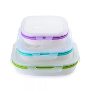 กล่องบรรจุอาหารซิลิโคน แบบพับให้แบนได้ ช่วยลดเนื้อที่ในการจัดเก็บ ใช