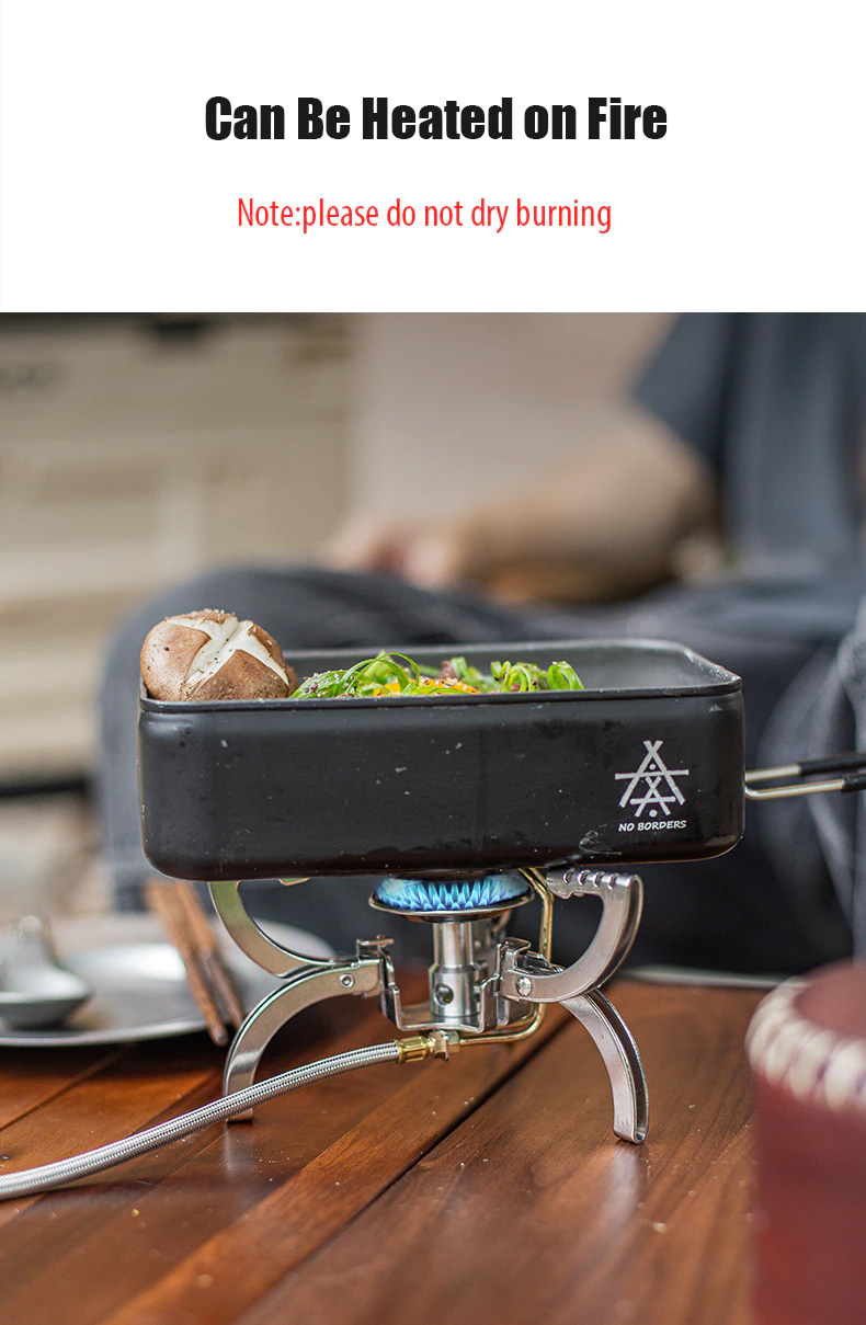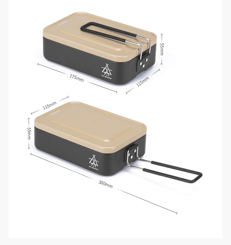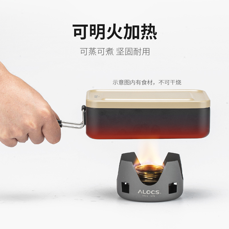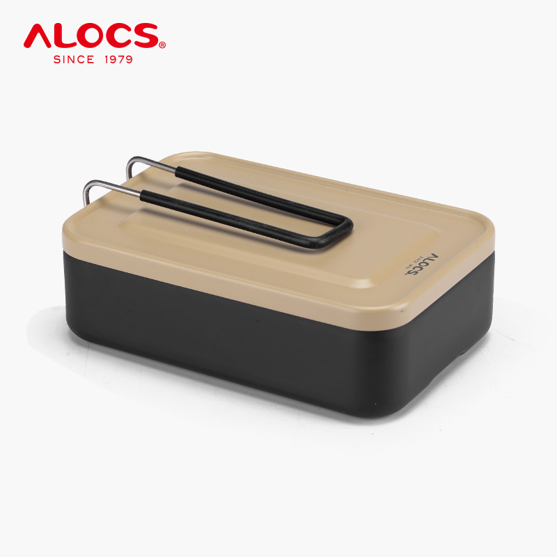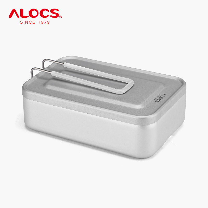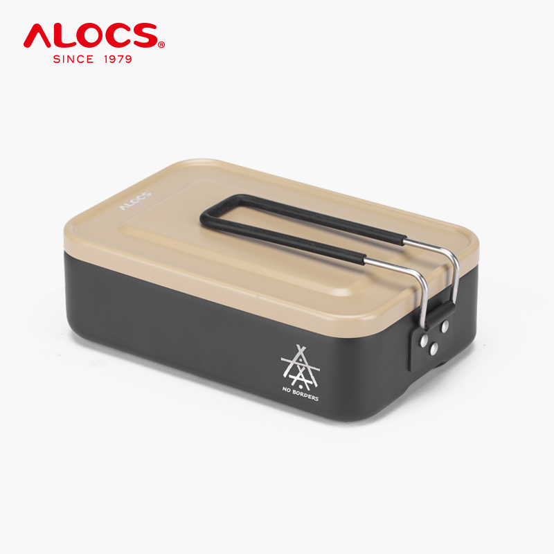 กล่องใส่อาหารทรงสี่เหลี่ยมพร้อมด้ามจับ Alocs ุรุ่น TW-136 (สีกากี) / Tw-137 (สีอลูมิเนียม) ออกแบบมาให้เป็นภาชนะใส่อาหารแบบมีฝาปิด ขอบฝาปิดเว้าเพื่อล็อคกันอาหารหก สามารถใช้ประกอบอาหารได้ ตั้งบนเตาไฟได้ ผลิตจากอลูมเินียมน้ำหนักเบา น้ำหนัก 205 กรัม ด้ามจับเป็นสเตนเลส หุ้มด้วยซิลิโคน ทำให้ไม่ร้อนมือเวลาประกอบอาหาร