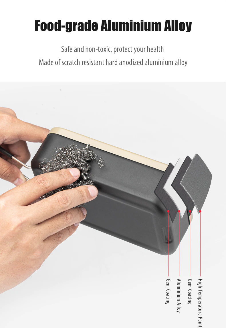 ผลิตจากอลูมิเนียม ทำอโนไดซ์เคลือบผิวทำให้มีความแข็งแรง ทนทานต่อการขีดข่วน สึกกร่อน