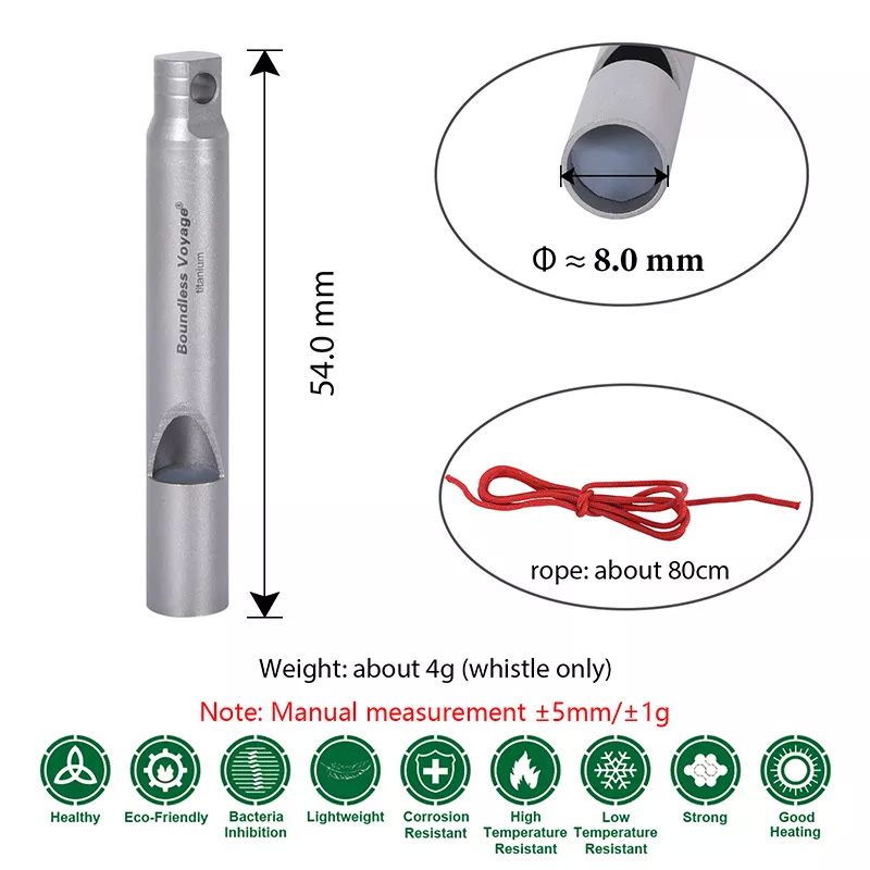 นกหวีดฉุกเฉิน  Boundless Voyage รุ่น Ti9010O  เป็นนกหวีดพกพาสำหรับใช้ในการขอความช่วยเหลือกรณีฉุกเฉิน ผลิตจากไทเทเนียม จึงไม่ขึ้นสนิม และมีน้ำหนักเบา หนักเพียงตัวละ 4 กรัม  ให้เสียงดังเกิน 100 เดซิเบล ออกแบบให้ไม่มีบอลข้างในจึงไม่มีปัญหาเสียงไม่ออกในสภาพอากาศเย็นจัดและเปียกน้ำ