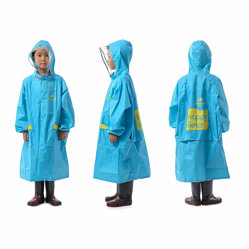 เสื้อกันฝนสำหรับเด็ก บริเวณขอบสายตาเป็นผ้าใส ไม่บังการมองเห็น เนื้อผ้ากันน้ำ ด้านหลังเว้นช่องสำหรับสวมใส่ขณะสะพายกระเป๋าได้