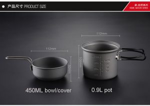 ชุดหม้อไทเทเนียมทำอาหารขนาด 1.8L พร้อมฝาปิด น้ำหนักเบาเพียง 248 กรัม หูจับห