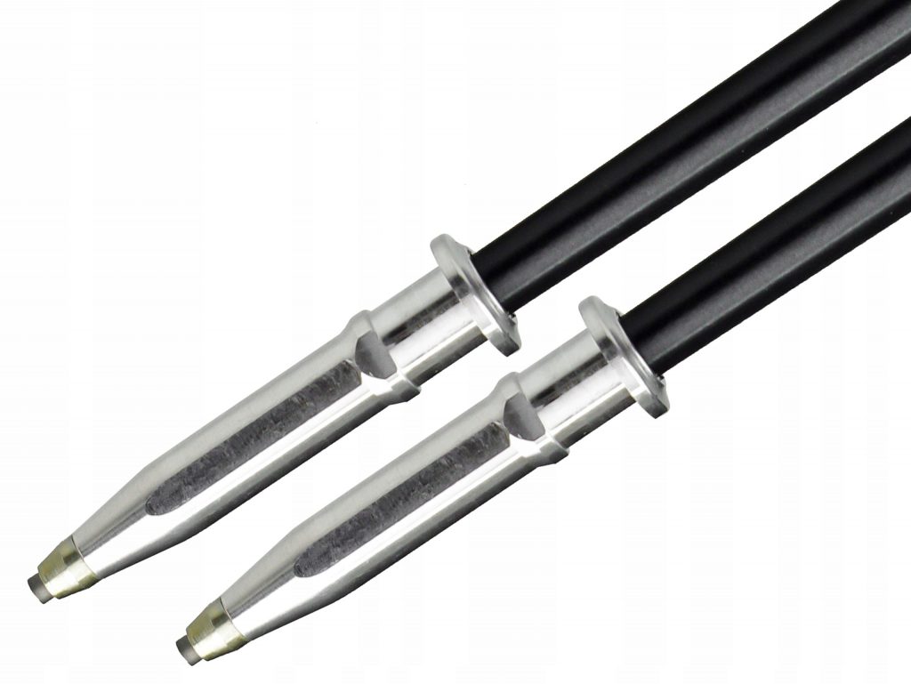 ด้ามจับเป็นเป็น EVA ขึ้นรูปเป็นลายไม้คอร์กซึ่งมีจุดเด่นในเรื่องของการไม่อุ้มน้ำ เหมาะกับคนที่มือเหงื่อออกง่าย หรือ ใช้ในสภาพอากาศชื้น ฝนตก ส่วนปลายเป็นโลหะคาร์ไบน์ ฐานผลิตจากอลูมิเนียม (รุ่นอื่นที่เป็นพลาสติค)