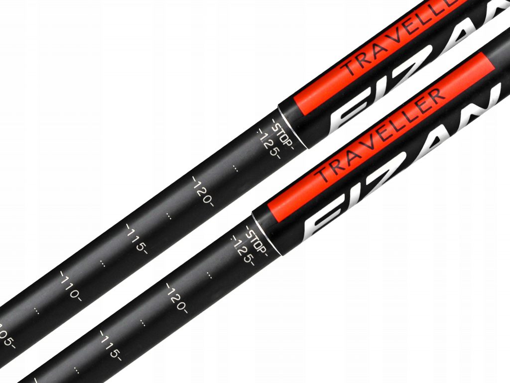 ไม้เท้าเดินป่า รุ่น Traveller จาก Fizan ผลิตจาก อิตาลี เป็นไม้เท้าเดินป่า 4 ท่อน ในลักษณะที่เรียกว่า Telescopic ก็คือเป็นท่อนยาวคล้ายกับกล่องส่อง น้ำหนักไม้เท้า อยู่ที่ 180 กรัม (ถ้ารวมสายรัดข้อมือจะเป็น 190 กรัม) ผลิตจากอลูมิเนียม 7001 ซึ่งมีความแข็งแรงสูง กลไกการล็อค (Locking Mechanism) จะใช้เป็นแบบหมุนเกลียว (Twist Lock) ซึ่งมีจุดเด่นที่ความมั่นคงแข็งแรง ด้ามจับเป็น EVA โฟมแบบยาว ที่นุ่มมือ