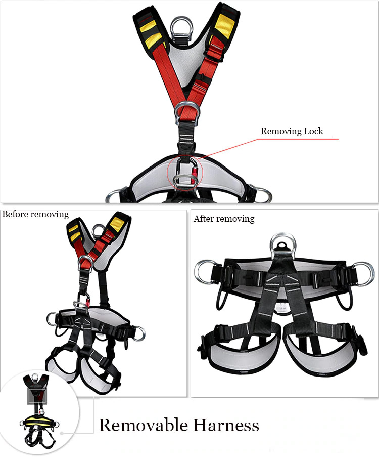 เข็มขัดเซฟตี้ เข็มขัดนิรภัย ฮาร์เนส harness แบบเต็มตัว ที่สามารถแยก ส่วนการใช้งานได้ ท่อนบน กับท่อนล่างได้ จาก Xinda รุ่น XD-A9516  ผลิตจากโพลีเอสเตอร์เสริมความแข็งแรงพิเศษ ทนต่อการเสื่อมสภาพ เหมาะสำหรับปีนเขา โรยตัว  ทำงานบนตึกสูง งานกู้ภัย