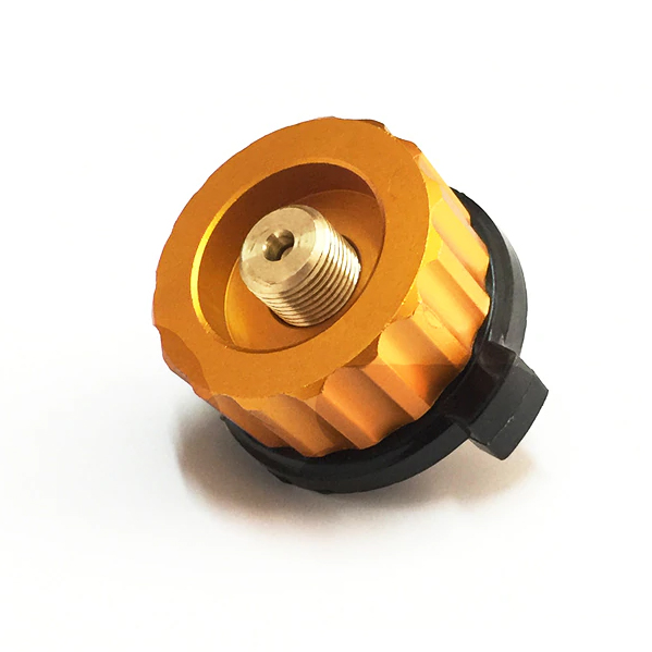หัวแปลงเตาที่ออกแบบมาสำหรับแก็สซาลาเปาให้สามารถใช้กับแก็สกระป๋องยาวได้ ผลิตจากวัสดุอลูมิเนียมอัลลอยด์ และ ทองแดงซึ่งมีความแข็งแรงสูง