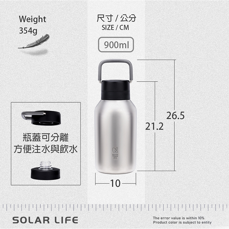 ขวดน้ำไทเทเนียม Keith Ti3035 ขนาด 900 ml ผลิตจากไทเทเนียมบริสุทธิ์ 99.96% แข็งแร