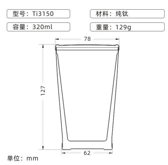 แก้วเบียร์ไทเทเนียมขนาด 450ml ผลิตจากโลหะไทเทเนียมความบริสุทธิ์ 99.9% น้ำหนั