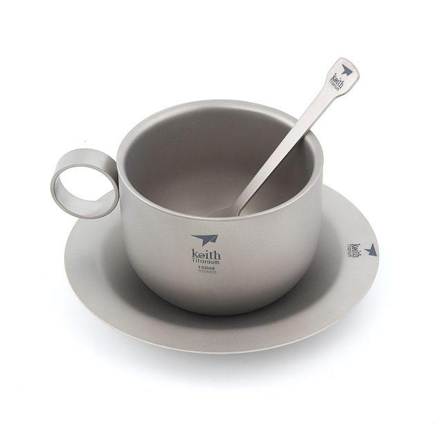 Keith-Ti3601-Titanium-Double-Wall-Coffee-Cup-Tea-Cup-Cafe-Spoon-Plate-3pcs-Tea-set-Outdoor