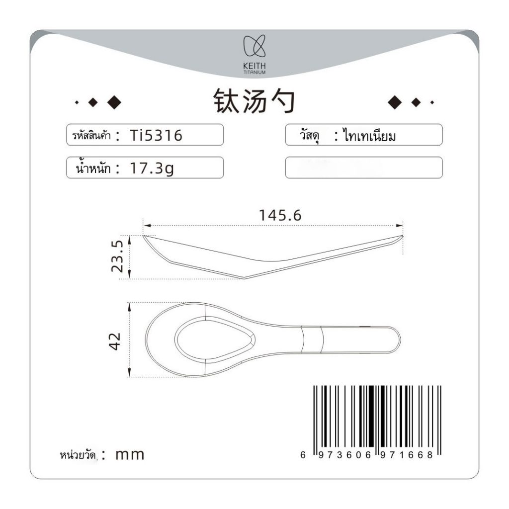ช้อนสั้นแบบเว้า ไทเทเนียม Keith รุ่น Ti5316 น้ำหนักเบาเพียง 17.3 g