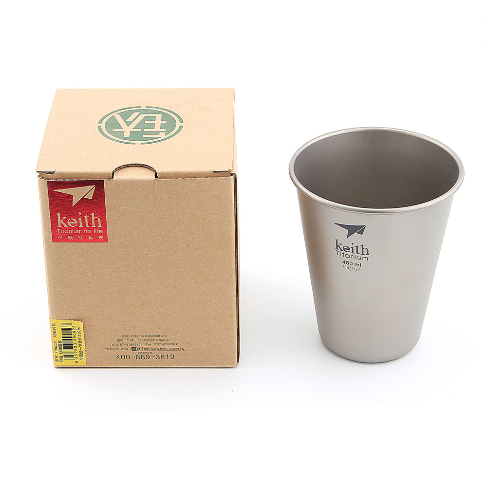 แก้วไทเทเนียม จาก Keith พร้อมฝาปิด ผลิตจากโลหะไทเทเนียม น้ำหนักเบา หูจับผล