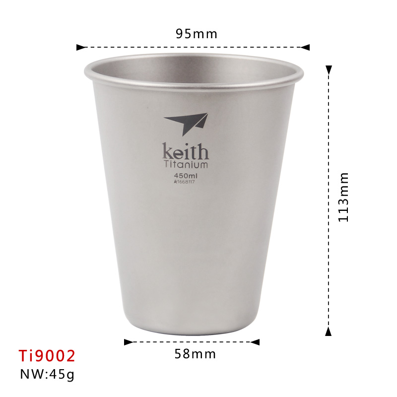 แก้วเบียร์ไทเทเนียมขนาด 450ml ผลิตจากโลหะไทเทเนียมความบริสุทธิ์ 99.9% น้ำหนักเบา หนักเพียง 43 กรัม