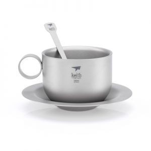 แก้วไทเทเนียมแบบ Double Wall จาก Keith พร้อมด้ามจับ และ ฝาปิดไทเทเนียม เป็นแก้ว2 ช