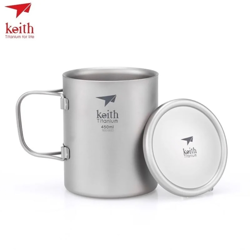 แก้วไทเทเนียม จาก Keith พร้อมฝาปิด ผลิตจากโลหะไทเทเนียม น้ำหนักเบา หูจับผล
