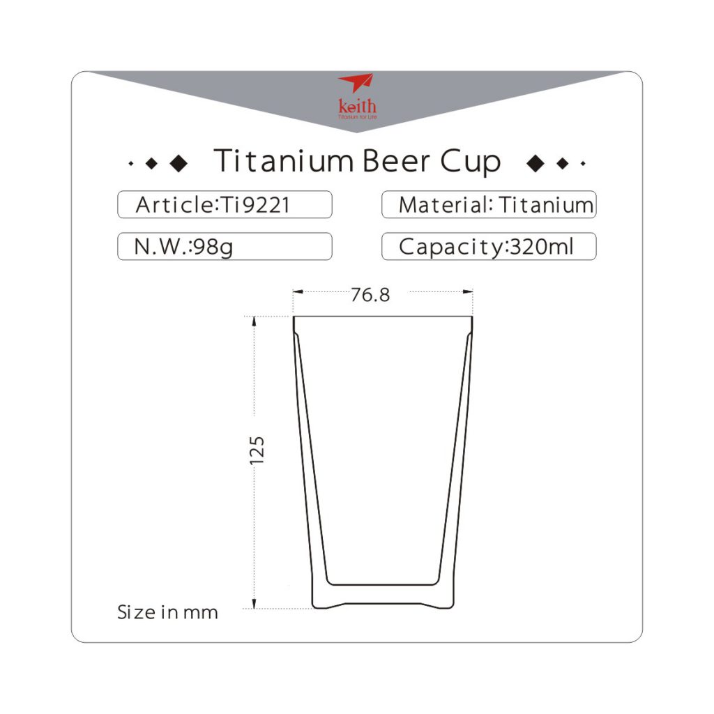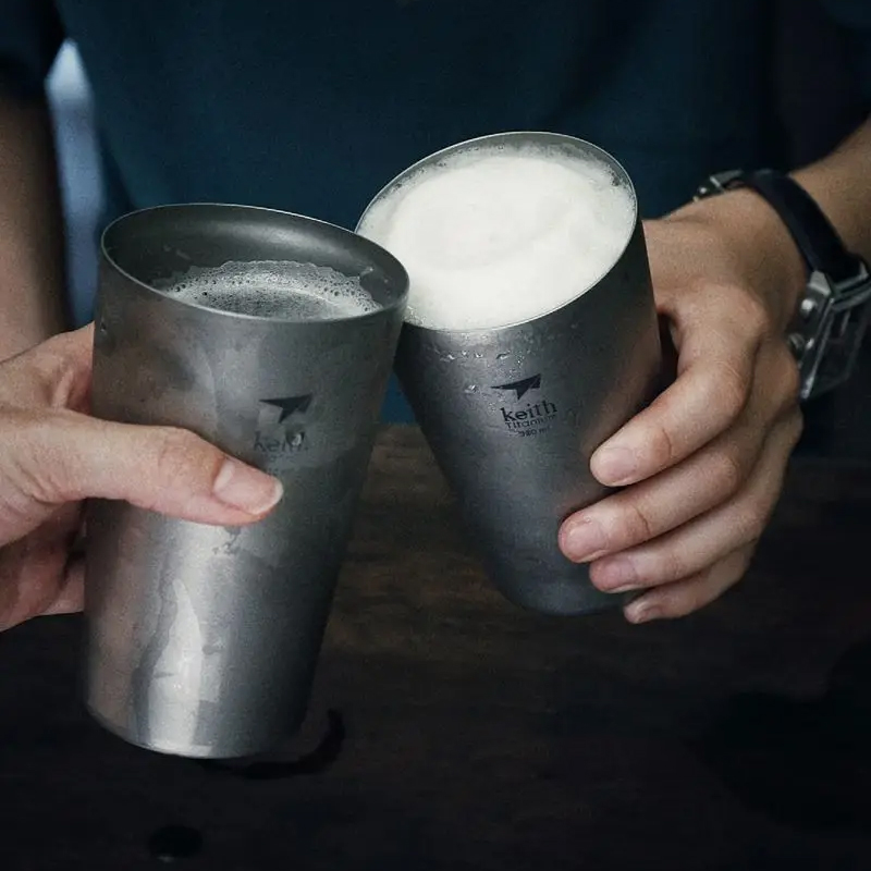 แก้วเบียร์ไทเทเนียมแบบ Double Wall 2 ชั้น พร้อมฝาปิด Keith รุ่น Ti9221 ผลิตจากวัสดุไทเทเนียม น้ำหนักเบาเพียง 98 กรัม สามารถใช้เป็นแก้วเบียร์ หรือแก้วกาแฟ ได้