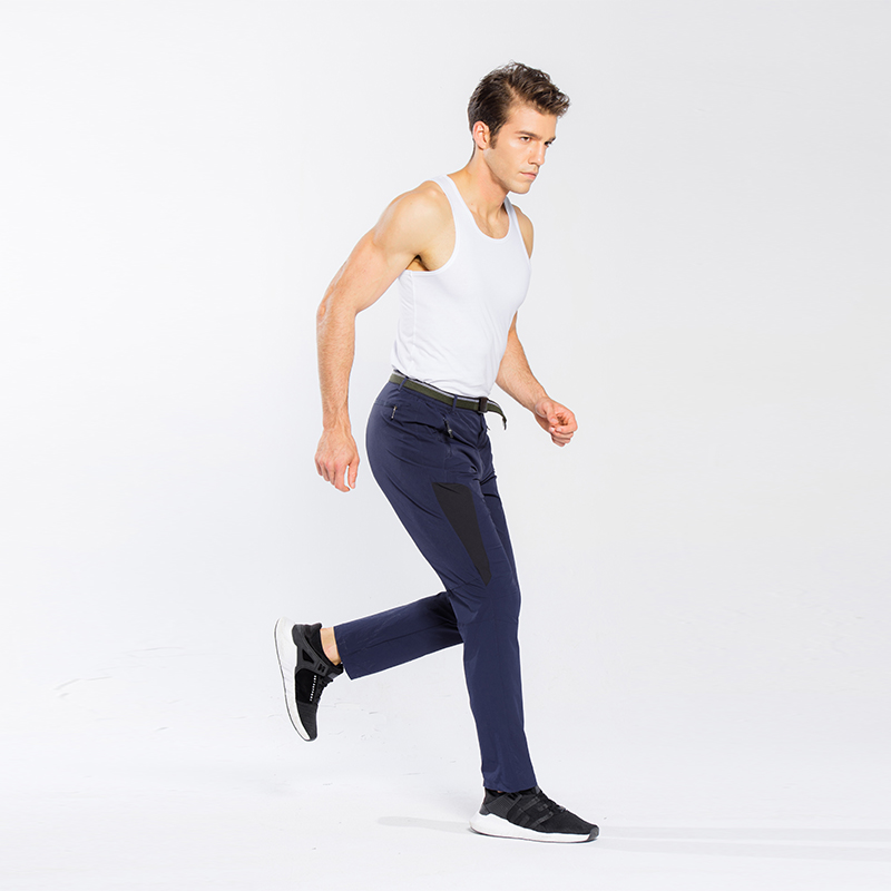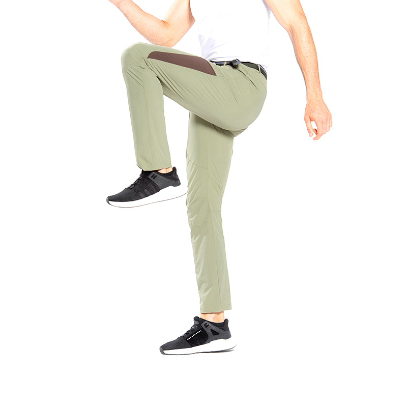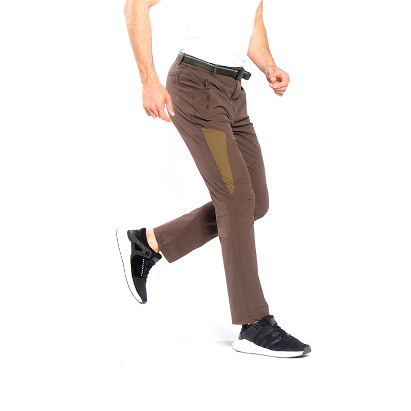 กางเกงเดินป่าแห้งเร็ว น้ำหนักเบา สำหรับผู้ชาย ออกแบบมาให้เหมาะสำหรับกิจกรมการเดินป่า และกิจกรรมกลางแจ้ง ผลิตจากผ้า ไนลอน ซึ่งไม่อุ้มน้ำ แห้งเร็ว เหมาะกับกิจกรรมเดินป่าที่อาจจะต้องเปียกฝนหรือข้ามลำธารจนกางเกงเปียก นอกจากนั้นยังทนทานต่อการเสียดสีได้เป็นอย่างดี เสริมความยืดหยุ่นเพื่อป้องกันการฉีกขาดโดยเส้นใย Spandex ทั้งนี้โดยคุณสมบัติแล้ว ผ้าไนลอนระบายอากาศได้ดีในระดับกลาง กล่าวคือ น้อยกว่าผ้าฝ้าย แต่ผ้าฝ้ายจะไม่เหมาะกับการเดินป่า เนื่องจากอุ้มน้ำ แห้งช้า และถ้าโดนน้ำจะมีน้ำหนักมาก ผ้าไนลอนจึงเป็นผ้าที่เหมาะอย่างยิ่งกับการใช้ในกิจกรรมเดินป่า