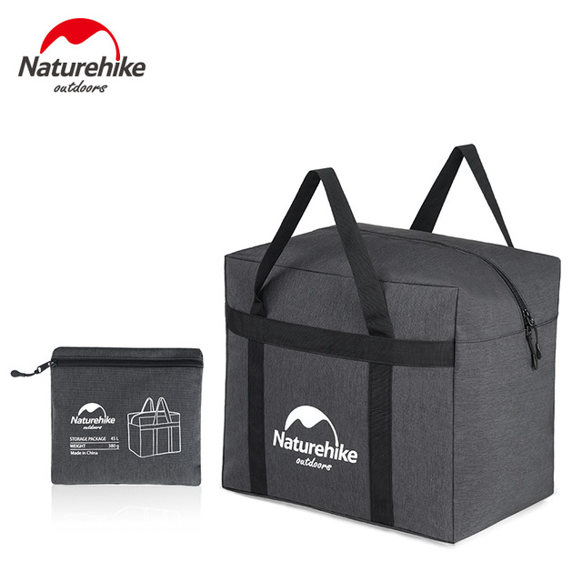 กระเป๋าพับได้สำหรับใส่ของ ขนาด 45 ลิตร จาก Naturehike สามารถกันฝนได้ในระดับฝนตกเล็กน้อย ใช้ซิป YKK รับน้ำหนักได้สูงสุด 20 kg เหมาะสำหรับใส่อุปกรณ์แค้มปิ้ง เดินป่า ปิคนิค