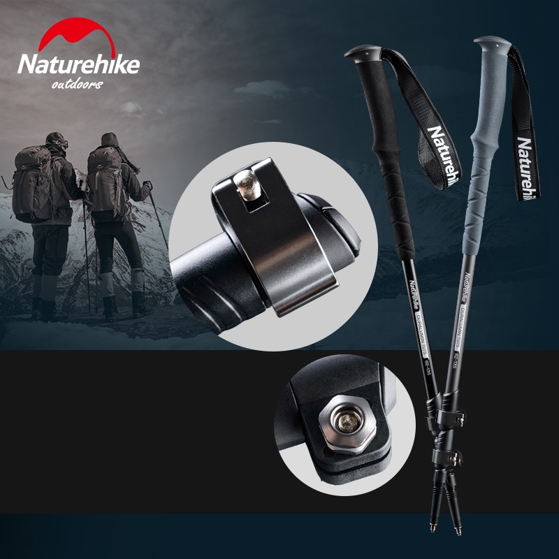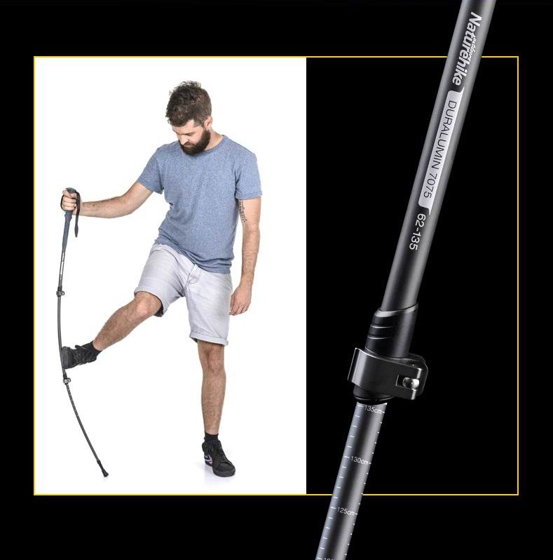 ไม้เท้าเดินป่า Naturehike ผลิตจากวัสดุน้ำหนักเบา อลูมิเนียมอัลลอยด์ 7075 ป้องกันการสึกกร่อน ด้ามจับเป็นโฟม สัมผัสนุ่มนวล กันลื่น ระบบล็อคแบบก้านโยก ช่วยให้การปรับความสูงต่ำของไม้เท้าทำได้ง่ายและรวดเร็วยิ่งขึ้น