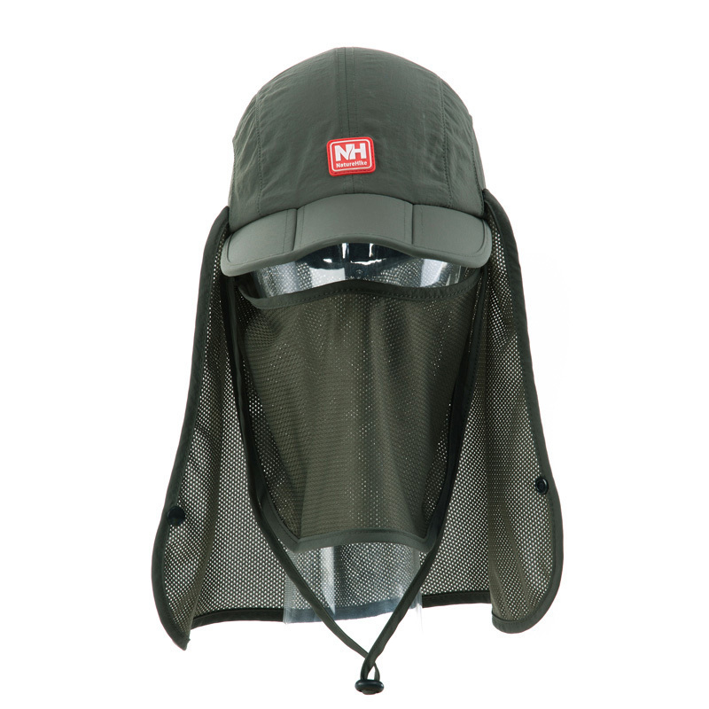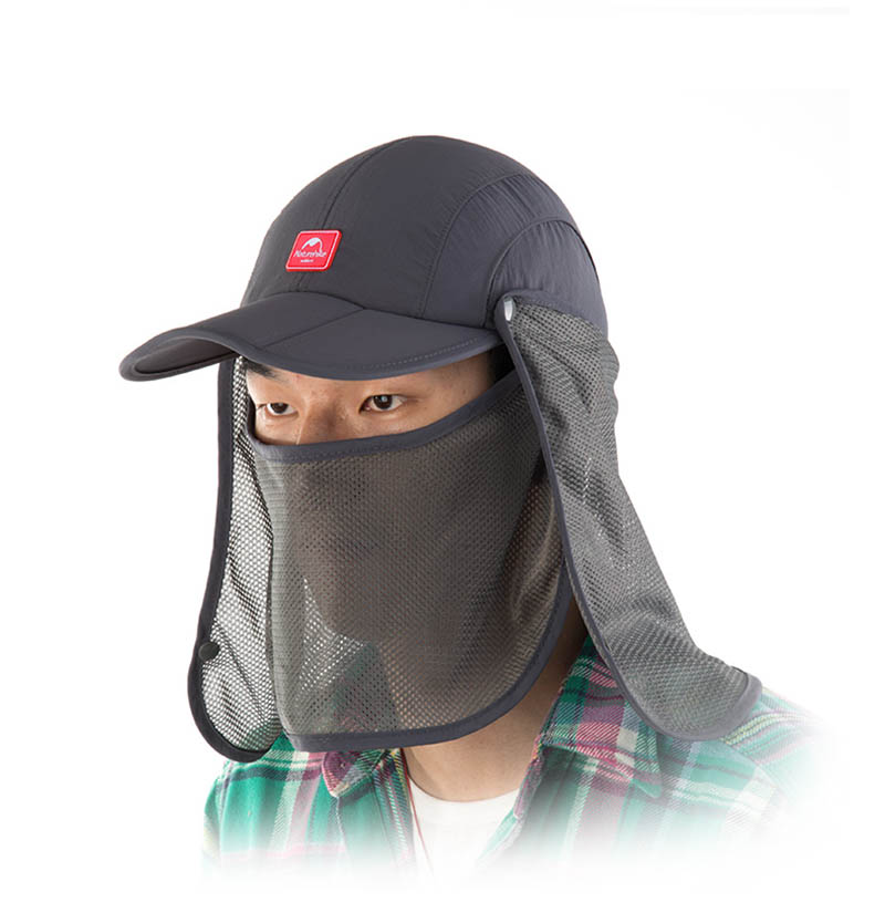หมวกแก็ปแบบคลุมหน้าได้ Naturehike รุ่น NH12M002-Z มีตาข่ายบังแดดที่สามารถคลุมปิดคอและด้านหน้าได้ ด้วยค่าการกันแดด UPF50+ อีกทั้งเป็นตาข่ายจึงระบายอากาศได้ดี ผ้าแห้งไว อีกทั้งตัวตาข่ายสามารถถอดออกได้ มีสายรัดที่ด้านหลังช่วยให้สามารถปรับความพอดีกับศีรษะผู้สวมใส่ได้