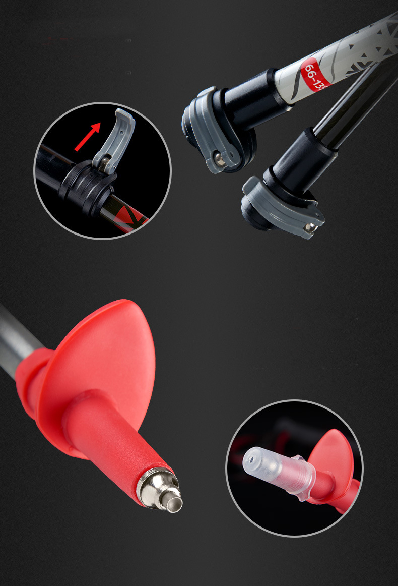 ไม้เท้าเดินป่า Naturehike รุ่น NH17D006-D ผลิตจากวัสดุน้ำหนักเบา ทั้งไม้เท้าหนักเพียงแค่ 185g วัสดุท่อนบนเป็นคาร์บอน ส่วนท่อนล่างเป็นอลูมิเนียมอัลลอยด์ 7075 ด้ามจับเป็นโฟม EVA ให้สัมผัสนุ่มนวล กันลื่น ระบบล็อคแบบก้านโยก ช่วยให้การปรับความสูงต่ำของไม้เท้าทำได้ง่ายและรวดเร็วยิ่งขึ้น