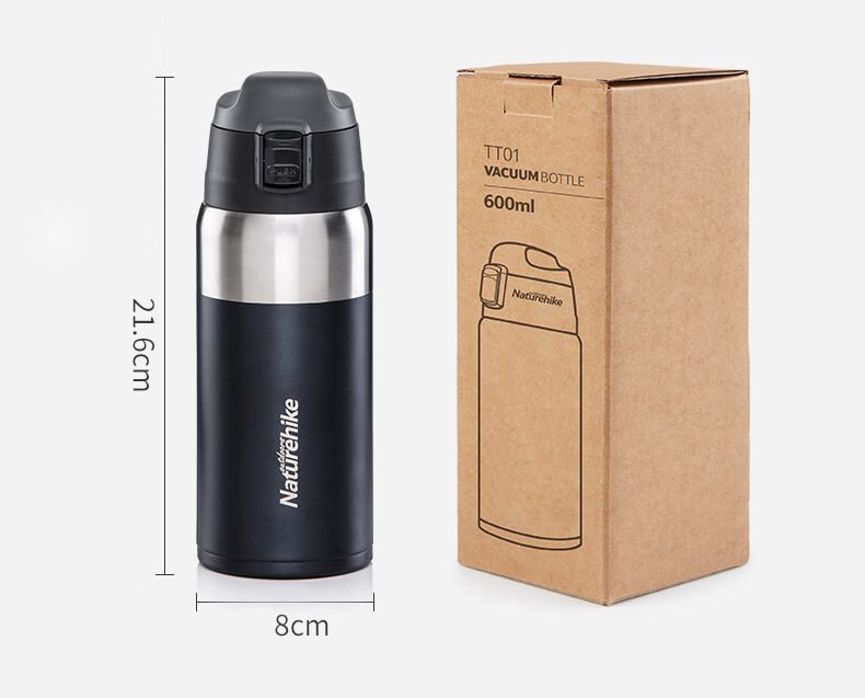 กระติกน้ำสูญญากาศ วัสดุสแตเลส จาก Naturehike ความจุ 600 ml เก็บร้อนเก็บเย็นได้นาน 8 ชั่วโมง