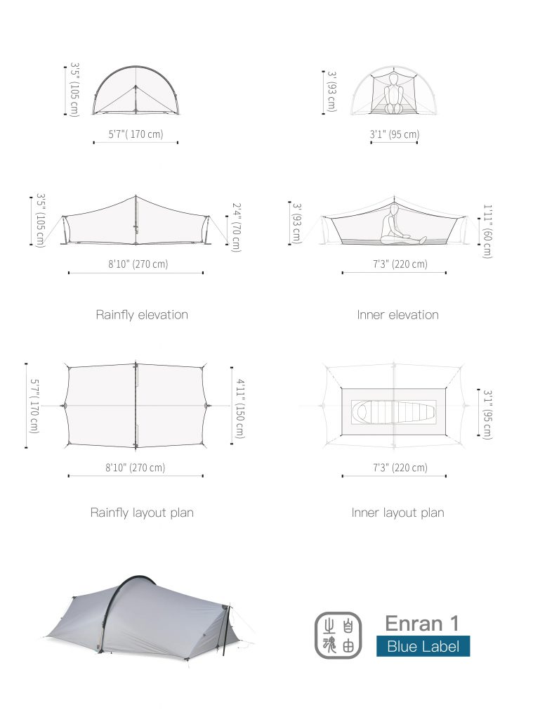เต็นท์ทรงอุโมงค์แบบกึ่งตั้งเองได้ จาก TFS รุ่น Enran 1 เป็นเต็นท์ขนาดนอน 1 คน จุดเด่นของเต็นท์รุ่นนี้คือ ด้วยความที่เป็นเต็นท์ทรงอุโมงค์จึงทนต่อลมแรงได้ดี มีทางเข้าออก 2 ด้าน สามารถเปิดเพิ่มฟลายชีทได้ทั้ง 2 ข้าง เพื่อเพิ่มการระบายอากาศ ช่วยลดการเกิดการกลั่นตัวเป็นหยดน้ำภายในเต็นท์ อีกทั้งเต็นท์รุ่นนี้มีน้ำหนักที่เบามาก น้ำหนักรวมทุกอย่างประมาณ 950 กรัม เหมาะสำหรับนักเดินทางทีเน้นน้ำหนักเต็นท์ที่เบา และสามารถกางได้ดีแม้ใช้งานในสภาพแวดล้อมที่มีลมแรง