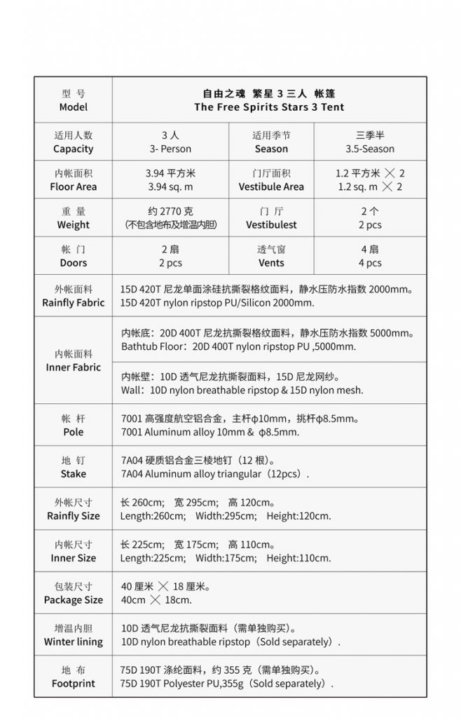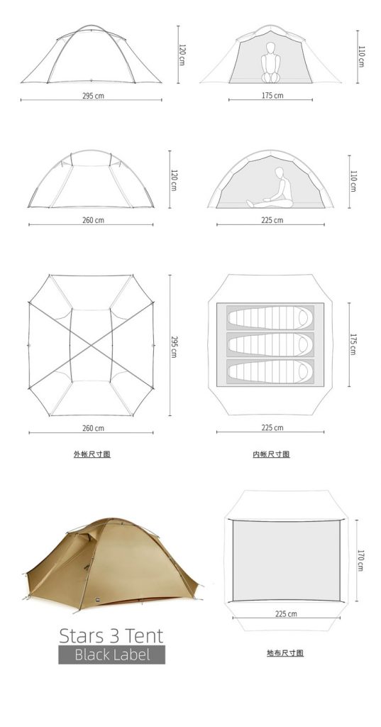 เต็นท์ TFS รุ่น Star 3 เป็นรุ่นที่จัดอยู่ในตระกูลแถบดำ (Black Label) ของ TFS ซึ่งจะเป็นกลุ่มเต็นท์รุ่นมาตรฐาน ออกแบบมาสำหรับการใช้งาน 3 คน ขนาดพื้นที่นอนด้านในกว้าง 1.75 m ซึ่งเป็นขนาดที่เพียงพอสำหรับการนอน 3 คน โดยไม่รู้สึกว่าอึดอัด นอกจากนั้นยังออกแบบให้มีความยาวที่มากกว่าเต็นท์ทั่วไป คือ ด้านในยาวถึง 2.25 m ทำให้เหมาะกับคนที่สูง หรือคนที่ต้องการเก็บของไว้ด้านใน ไม่ว่าจะเป็นวางของช่วงศีรษะหรือปลายเท้า ก็สามารถทำได้ง่าย  ทำให้ผู้ใช้ 3 คนสามารถเก็บของไว้ด้านในเต็นท์ได้ โดยไม่จำเป็นต้องซื้อเต็นท์ขนาดสำหรับ 4 คนเอาไว้วางของ