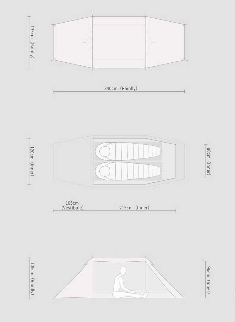 เต็นท์ตัวนี้ออกแบบมาสำหรับนอน 2 คน ด้วยขนาดความกว้าง 120 cm พร้อมพื้นที่ในการเก็บของขนาด 1.1 ตารางเมตร พร้อมช่องระบายอากาศ 2 ช่อง สามารถปรับใช้งานได้หลากหลาย จะกางเฉพาะฟลายชีทก็ได้ หรือจะถอดเฉพาะส่วนก็ได้