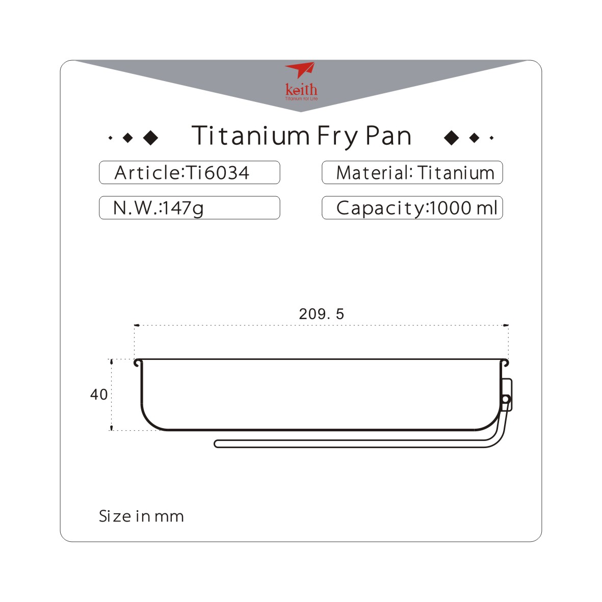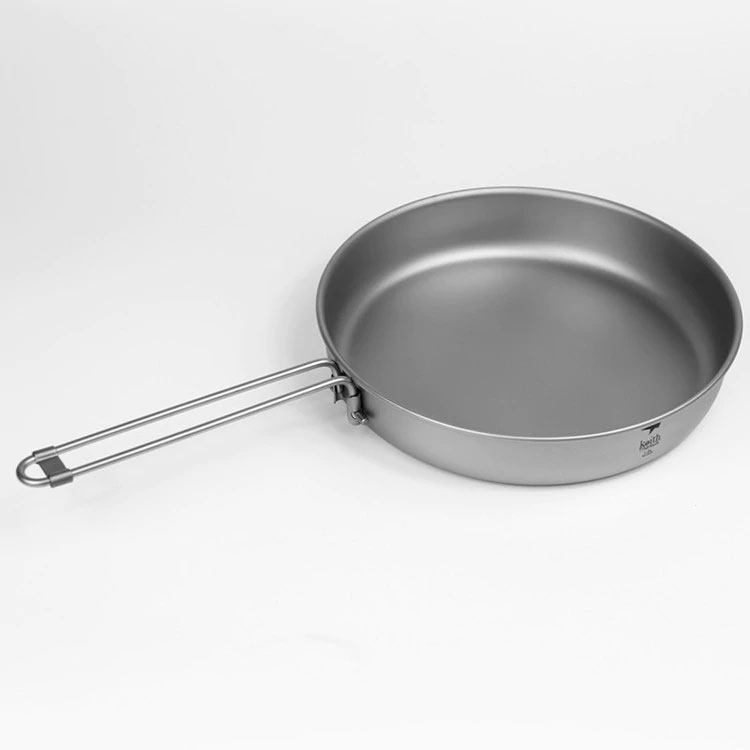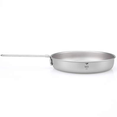 กระทะไทเทเนียม  Keith รุ่น Ti6034 น้ำหนักเบาเพียง 147 กรัม ทำความสะอาดได้ง่าย ความจุ 1 ลิตร ด้ามจับเป็นแบบพับได้ ทำให้ใช้พื้นที่ในการจัดเก็บเล็กลง เหมาะกับการพกพาไปใช้ในกิจกรรมเดินป่า แคมปิ้ง