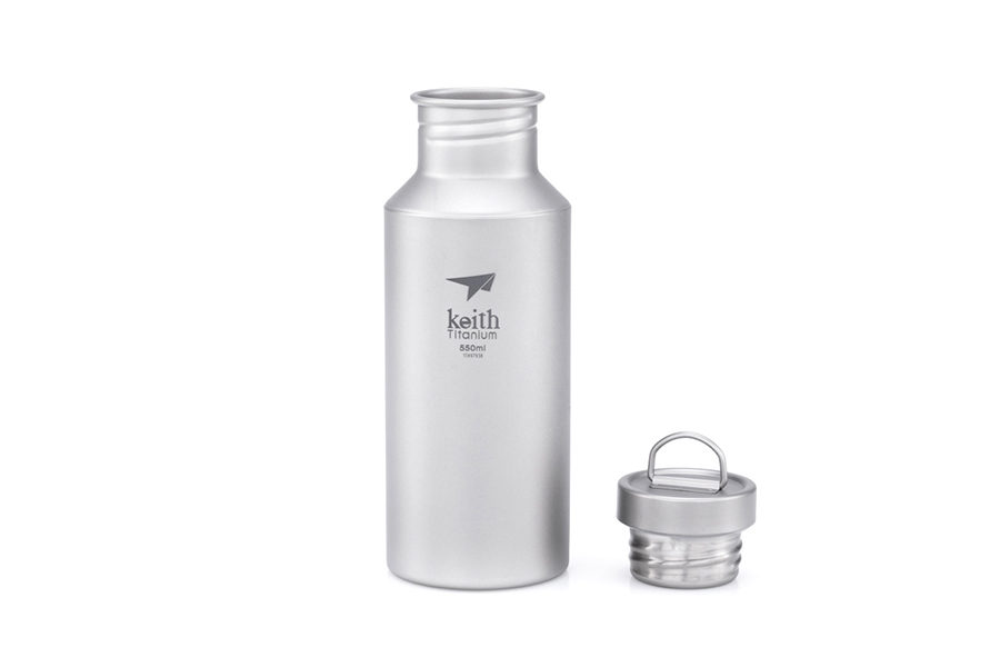 ขวดน้ำไทเทเนียม Keith ขนาด 550 ml ผลิตจากไทเทเนียมบริสุทธิ์ 99.96% แข็งแรงทนทานและน้ำหนักเบาเพียง 96 g ปราศจากการเคลือบสารใดๆทั้งสิ้น ปลอดภัย ไร้สารพิษ ไร้กลิ่น ไม่ส่งผลต่อรสชาติ ทนต่อการกัดกร่อนและยังยับยั้งการเจริญเติบโตของเชื้อแบคทีเรีย ขวดน้ำไทเทเนียม Keith สามารถบรรจุได้ทั้งน้ำร้อนและน้ำเย็น ซึ่งทนต่อความร้อนอุณหภูมิสูงถึง 1600 องศาเซลเซียส ไม่ทำให้เสียรูปทรง และไม่เปราะง่ายเมื่ออยู่ในอุณหภูมิเย็นจัด ด้วยรูปแบบที่หรูหราและใช้งานง่าย ขวดน้ำไทเทเนียม Keith จึงเหมาะสำหรับการพกพาไปใช้ในชีวิตประจำวันและกิจกรรมกลางแจ้ง