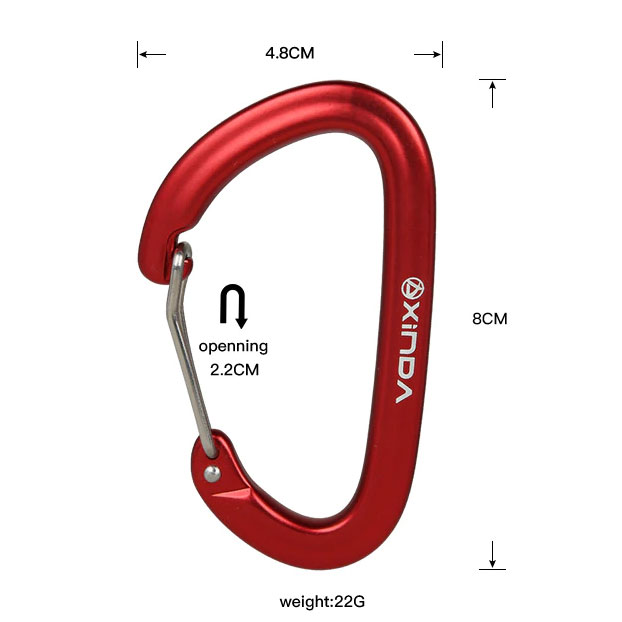 คาราบิเนอร์ รูปตัว D Xinda รับโหลดได้สูงสุด 26Kn มีมาตรฐาน CE , UIAA รองรับ มีระบบล็