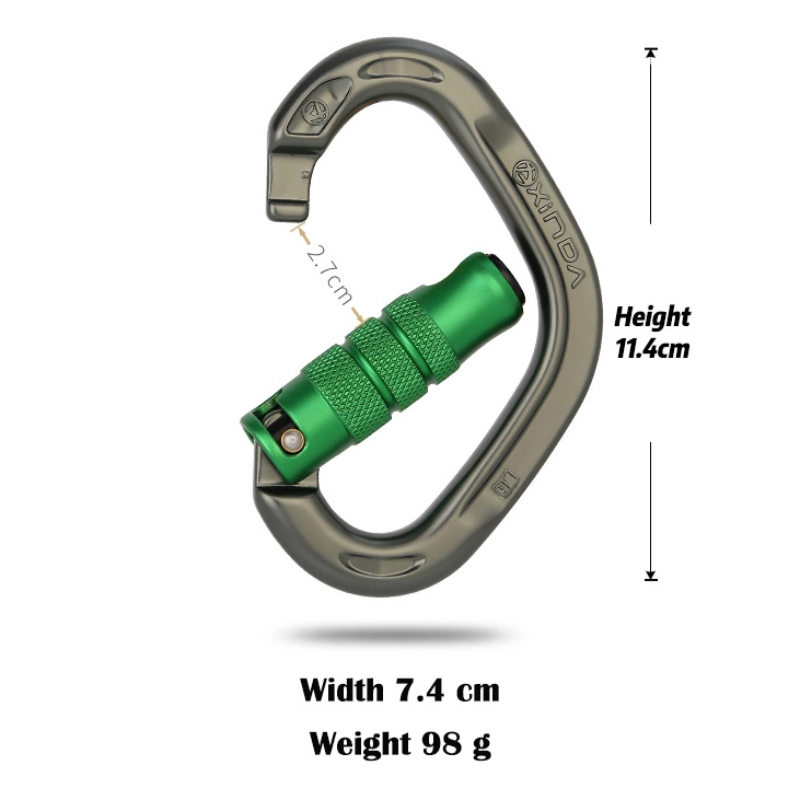คาราบิเนอร์ ครึ่งทรงกลม  Xinda รับโหลดได้สูงสุด 22Kn มีมาตรฐาน CE , UIAA รองรับ  มีระบบล็อค Triple lock  ทุกตัวผ่านการทดสอบโหลดขนาด 10kN