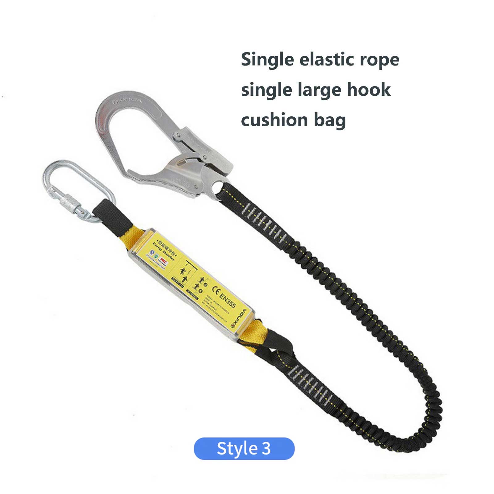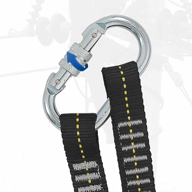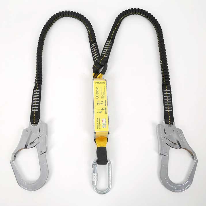 อุปกรณ์กันตกแบบขอเกี่ยว  พร้อม Absorber สลิงยืดหยุ่นสำหรับลดแรงตก  Xinda รุ่น XD-PJ36 ผลิตจากวัสดุคุณภาพสูงที่มีความแข็งแรง ทนต่อการเสื่อมสภาพ เชือกแบนโพลีเอสเตอร์ ยาว 84 cm รับแรงได้ 25KN พร้อมบัฟเฟอร์สำหรับลดแรงเวลาตก และคาราบิเนอร์เหล็กรูปตัวโอขนาด 25KN